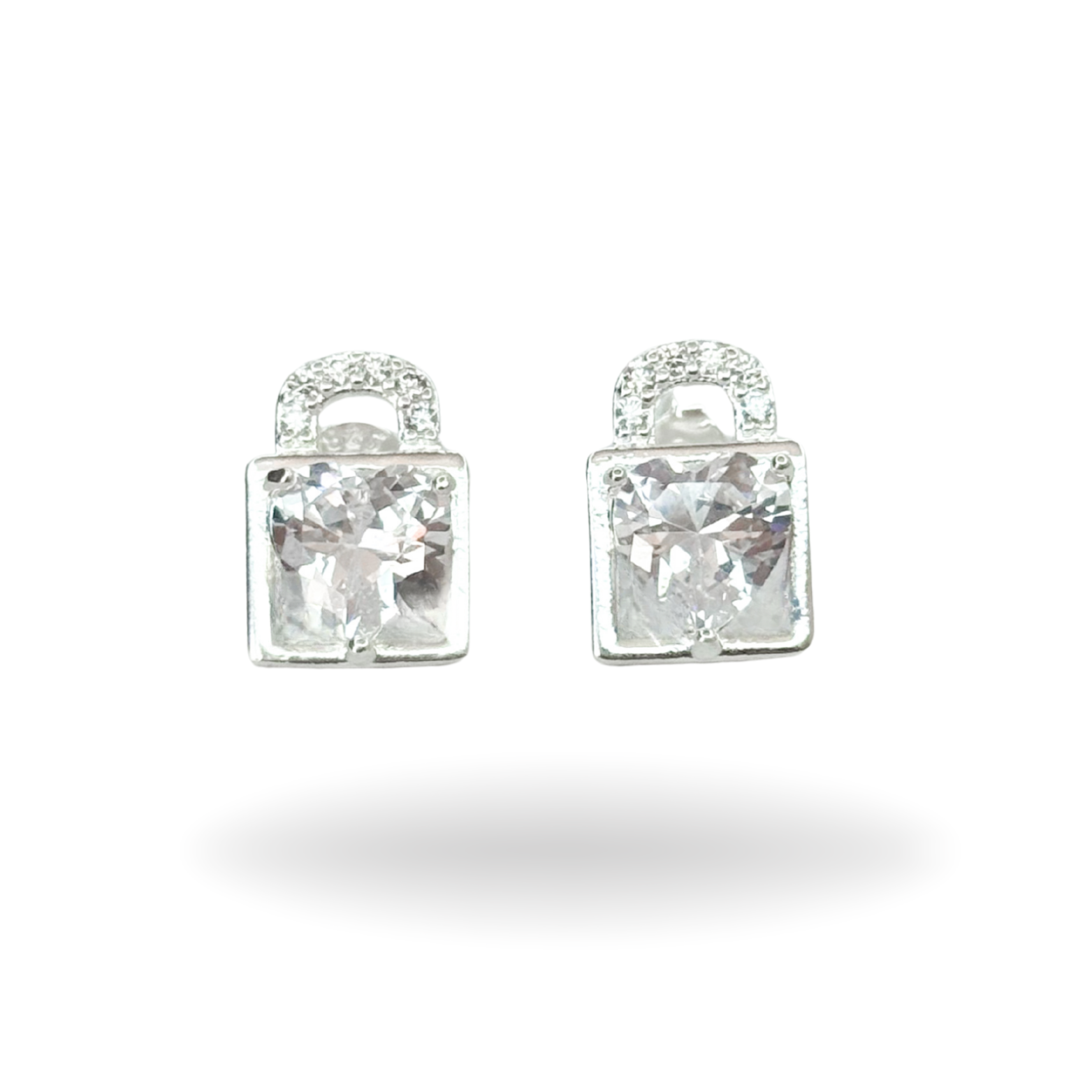 Aros en forma de candado con circon central en forma de corazón. 1,5cm x 1,5cm