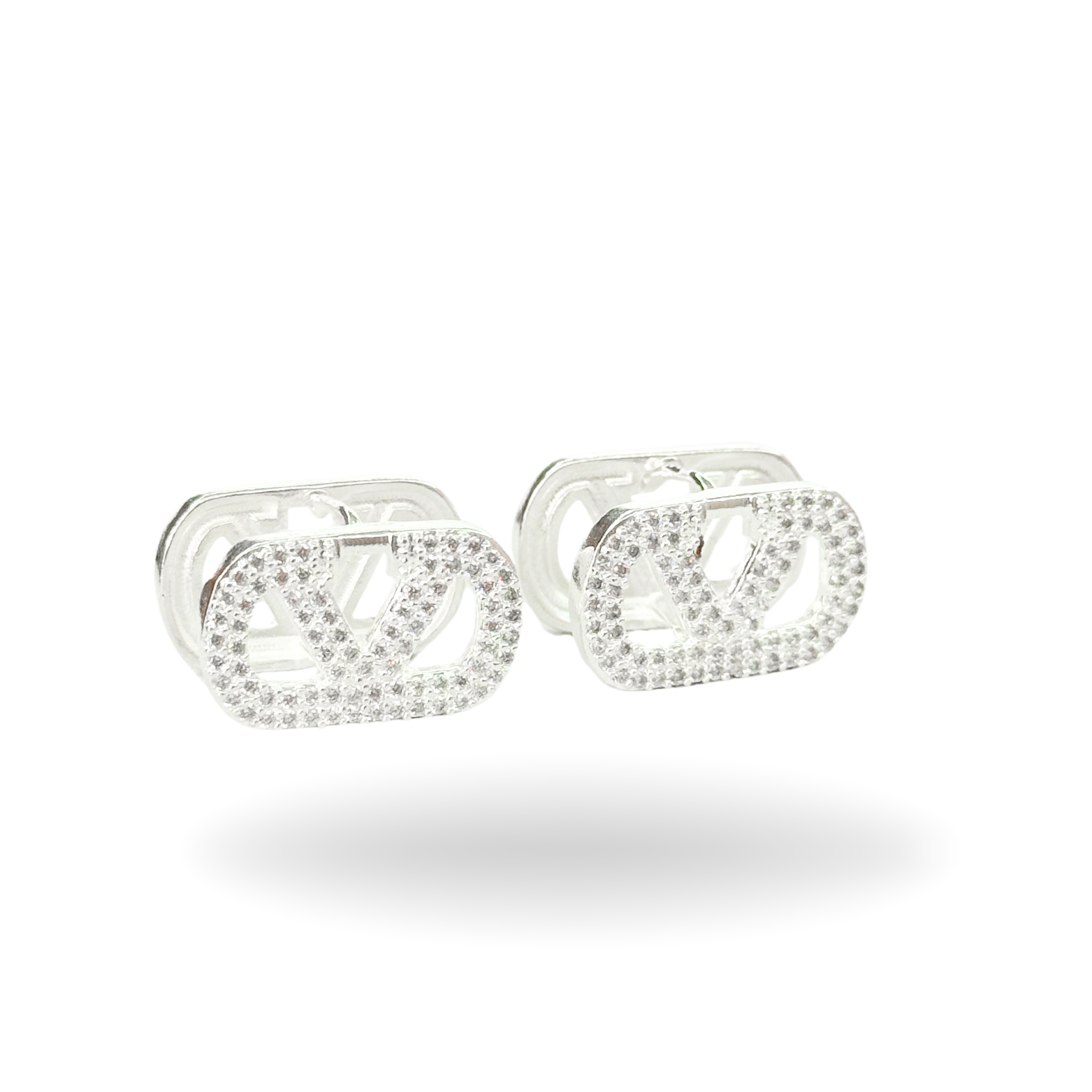 Aros tipo argolla con incrustaciones de micro circon, 1cm x 2cm.