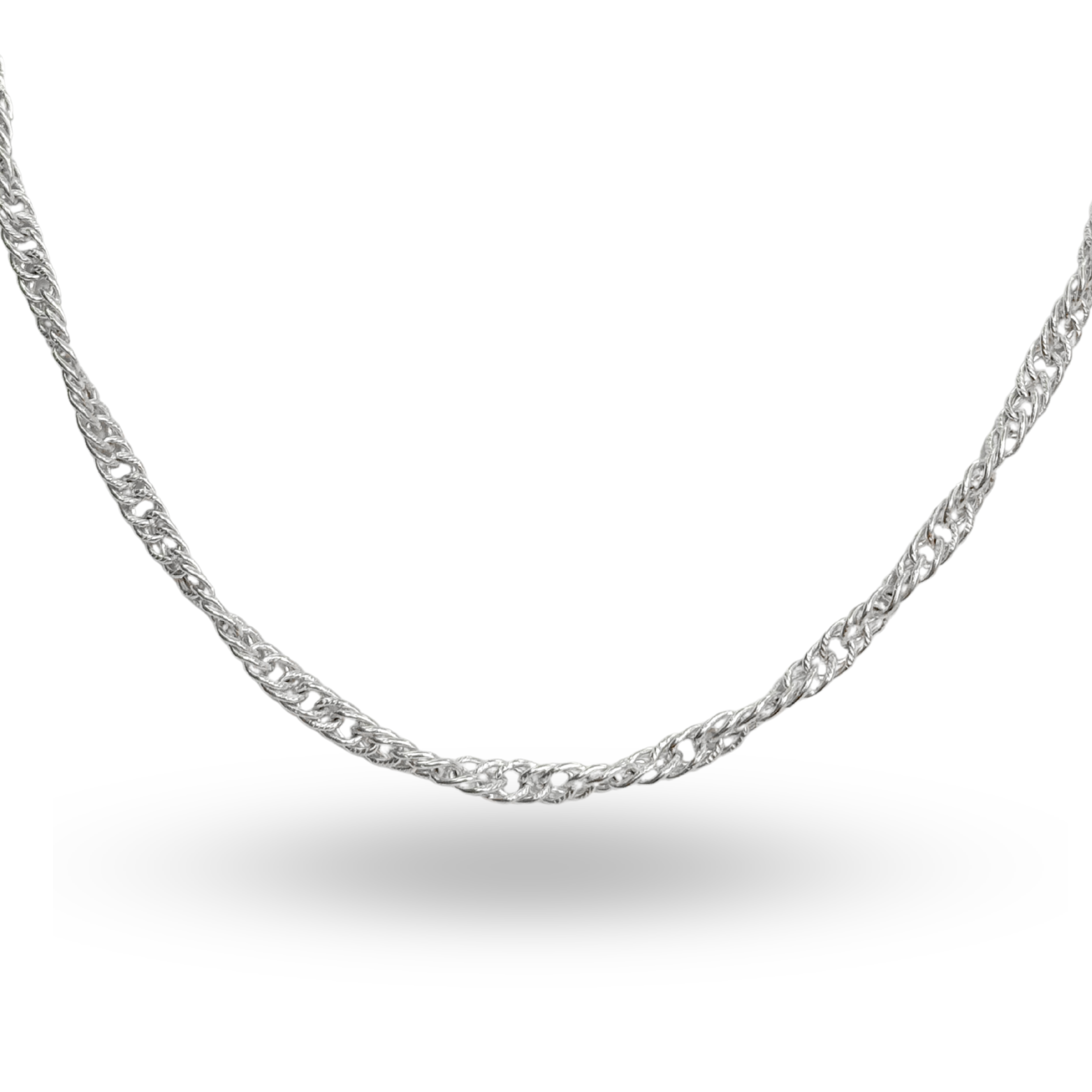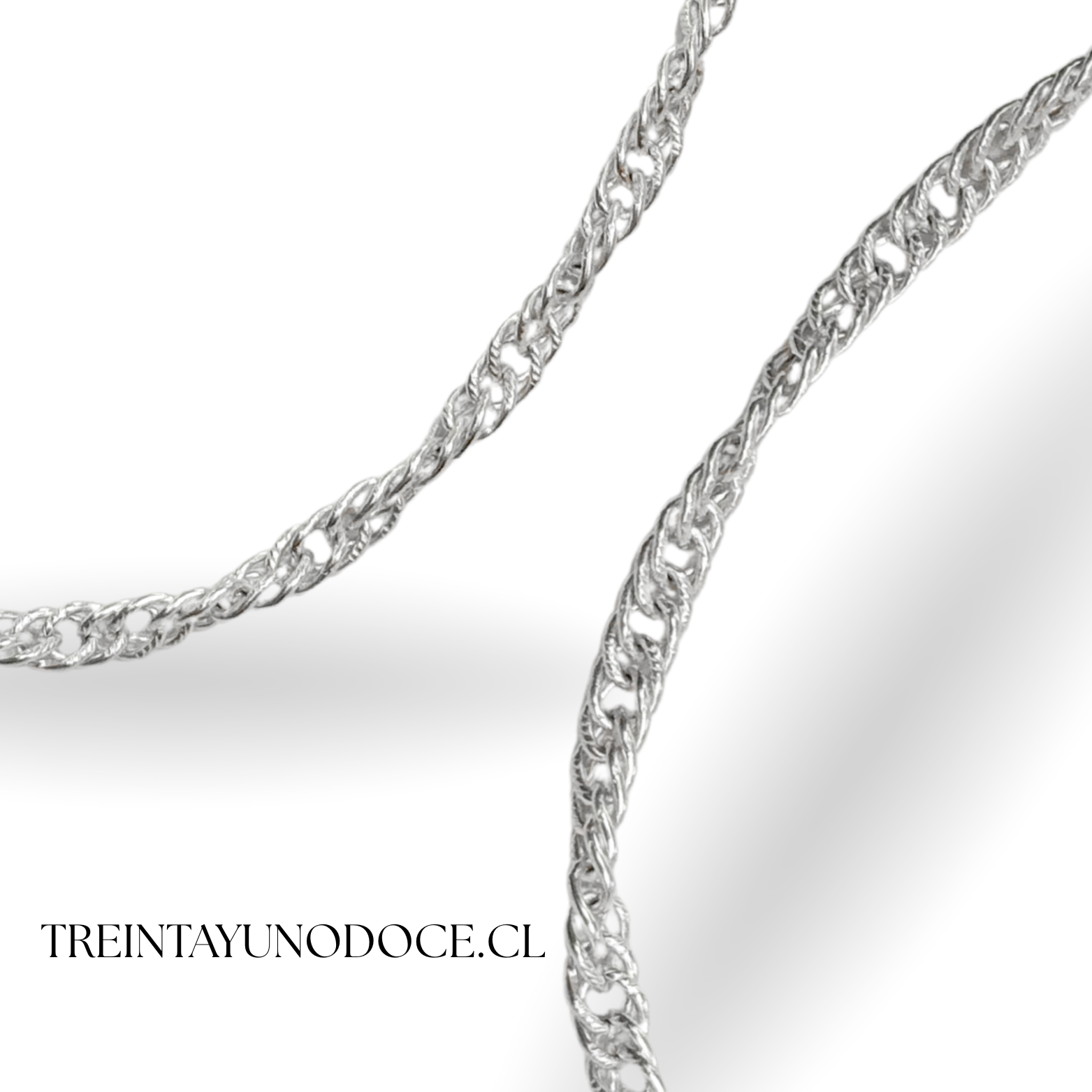 Cadena doble grumett 4mm de grosor con un diseño torcido estilo Singapur, 74cm de largo.