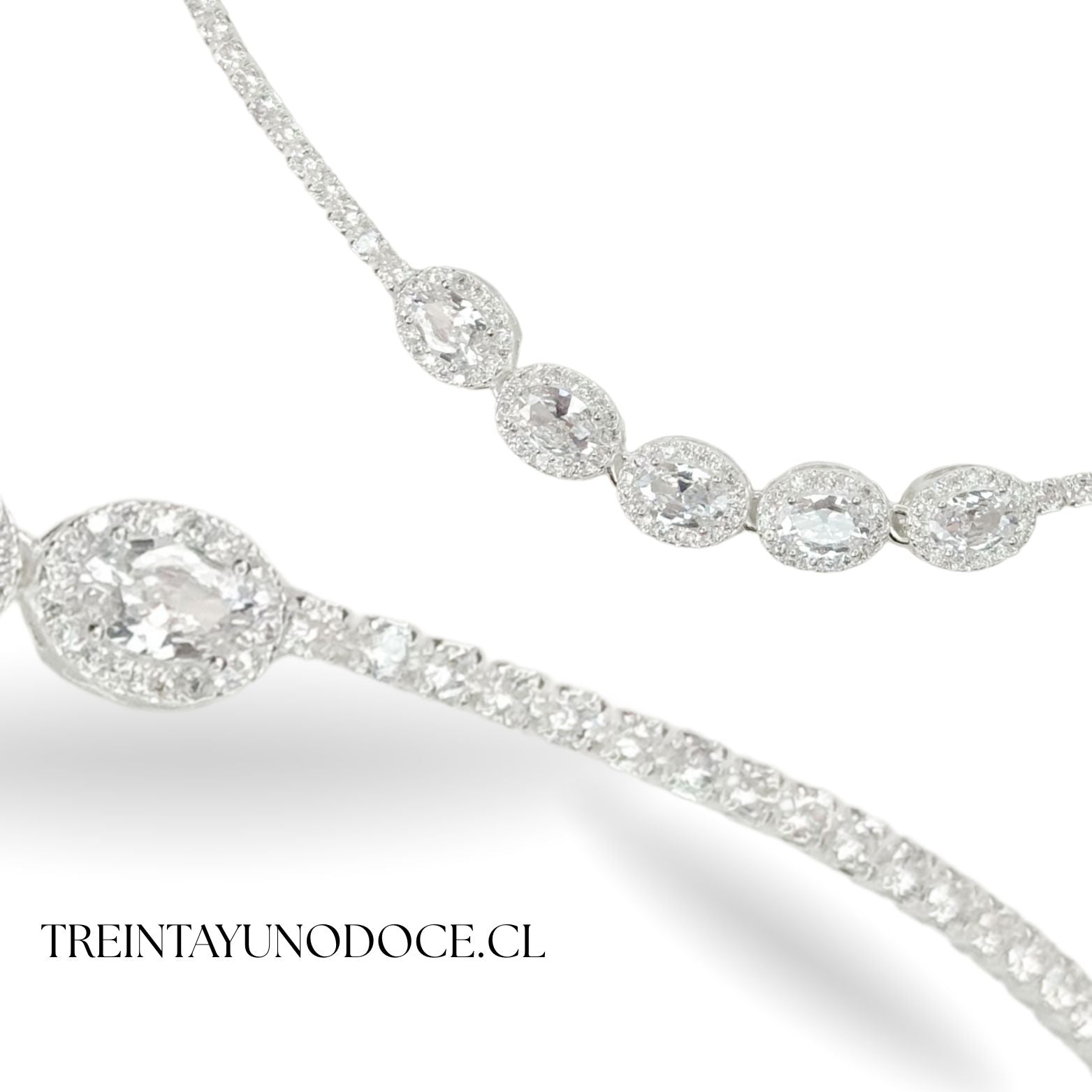 Largo 50 cm ajustable , grosor 2 mm , 5 óvalos de 6 mm full circón.