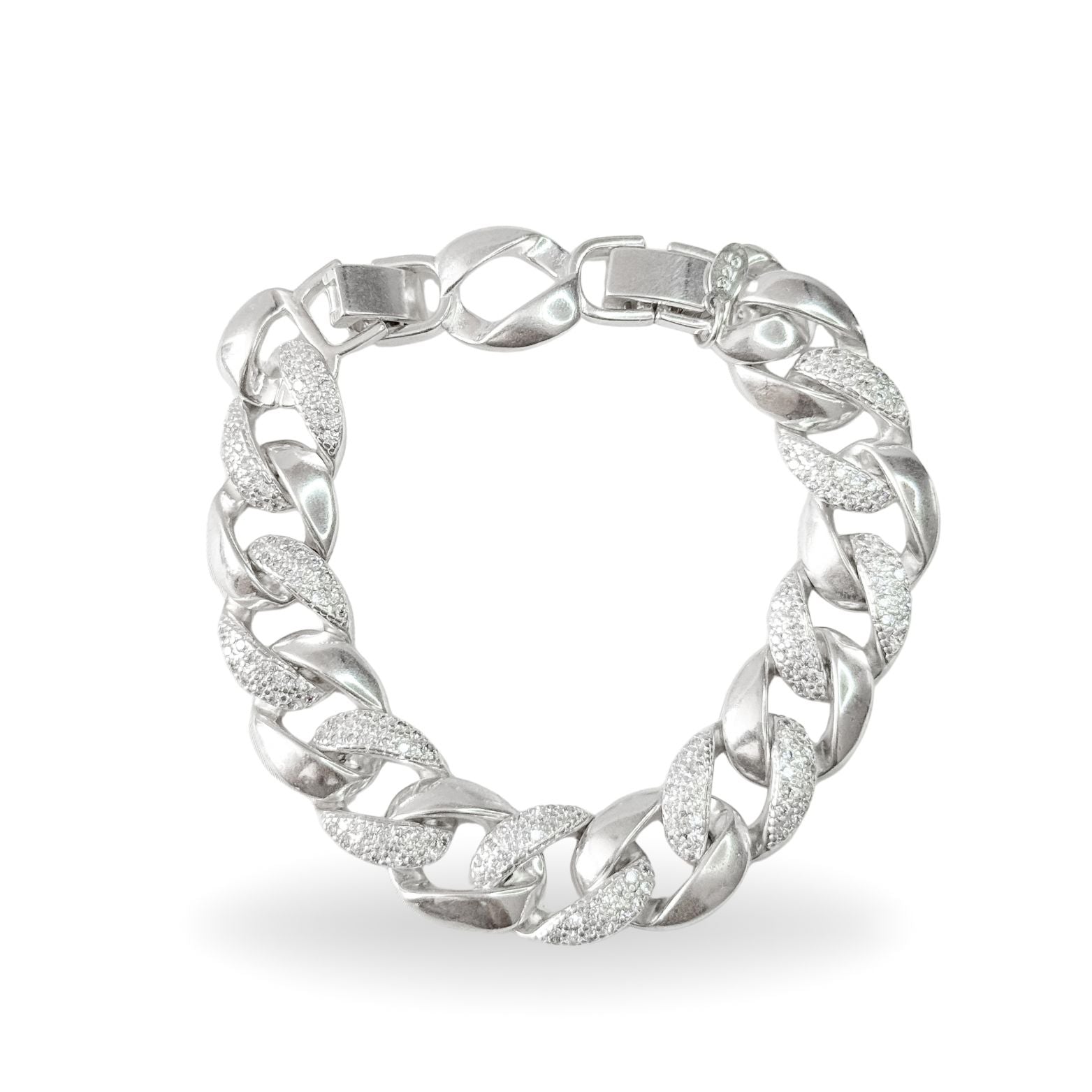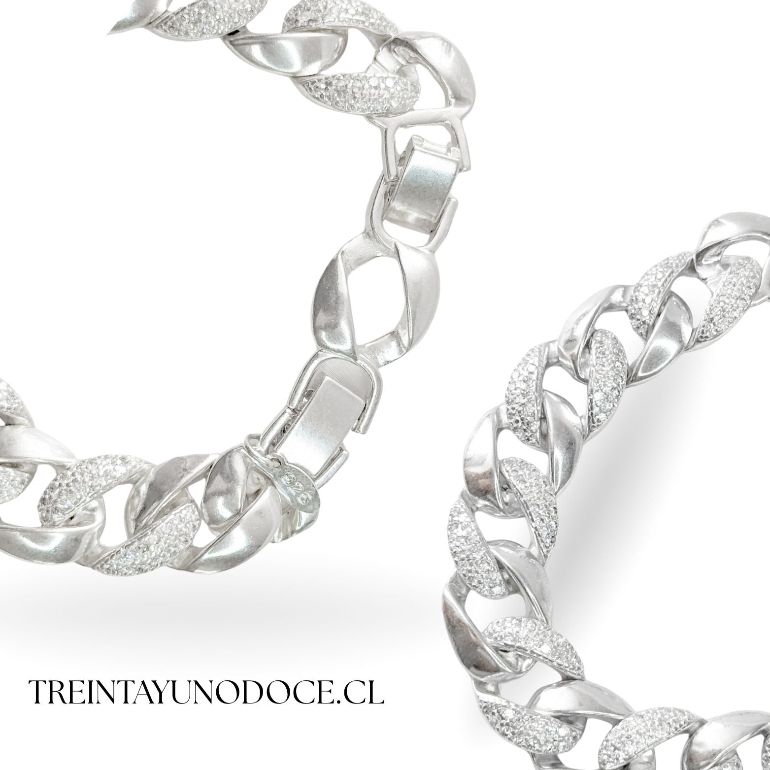 Pulsera de 1,5cm de grosor estilo grumete con incrustaciones de micro circón en eslabón de por medio. 18cm y 21 cm, extensión del mismo eslabón para cumplir los 21 cm de largo.