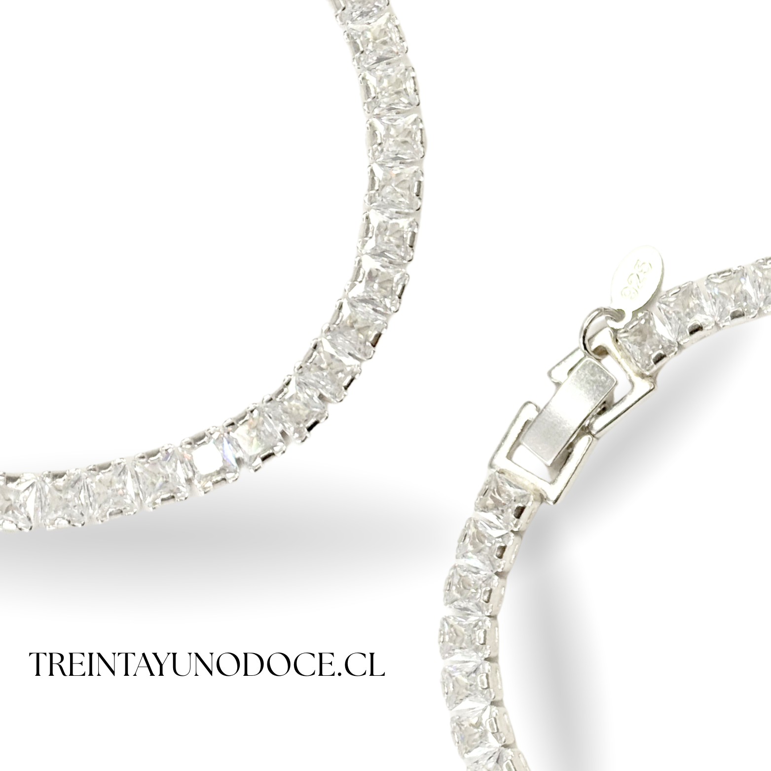 Pulsera tenis plata 925 con circones cuadrados, 21cm.